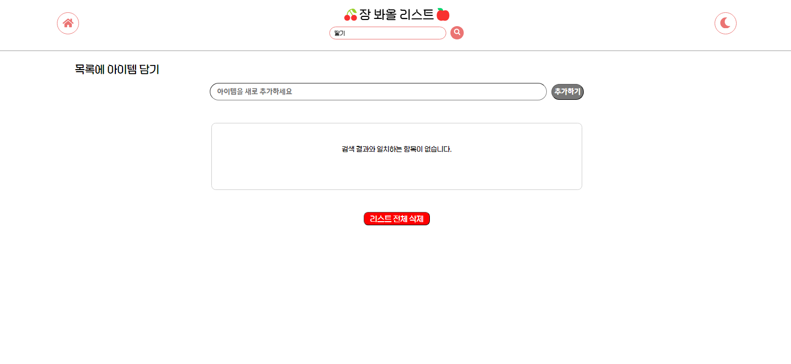아이템 추가용 input 박스가 기존 레이아웃에 존재하다 보니, 검색 input은 어디 배치해야 가장 UI/UX가 좋을지 고심하였다. 결국에는 상단의 header에 배치하기로 결정한 뒤 <Header/>에 함께 넣어주었다.(추후 구조 분리가 필요해 보인다!)