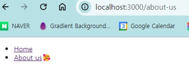 /about-us 주소로 가보면 해당 컴포넌트가 보이는 것을 확인할 수 있다! 이처럼 nextJS에서는 편하게 라우터 사용 가능하다.