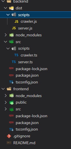 서버가 필요하다고 하니 무작정 express를 install 합니다. 또 프로젝트 상단에 backend라는 폴더를 하나 만든 뒤, 저는 타입 스크립트 코드를 쓰고 있으니 내부에는 server.tsx를 생성했습니다. puppeteer을 사용해서 특정 사이트에서 데이터를 긁어오는 코드도 필요해보입니다. 따라서 backend 폴더 내에 scripts 폴더를 만들고 데이터를 크롤링 해오는 코드를 담을 crawler.tsx파일도 생성하기로 합니다. 완벽합니다.