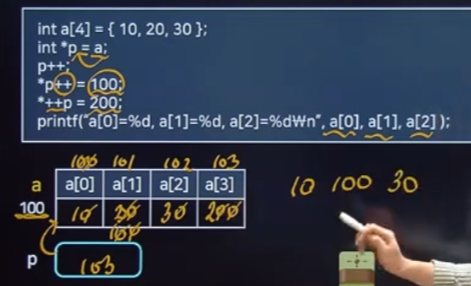 *darr은 가리키는 값, 즉 100이라고 보면 된다.